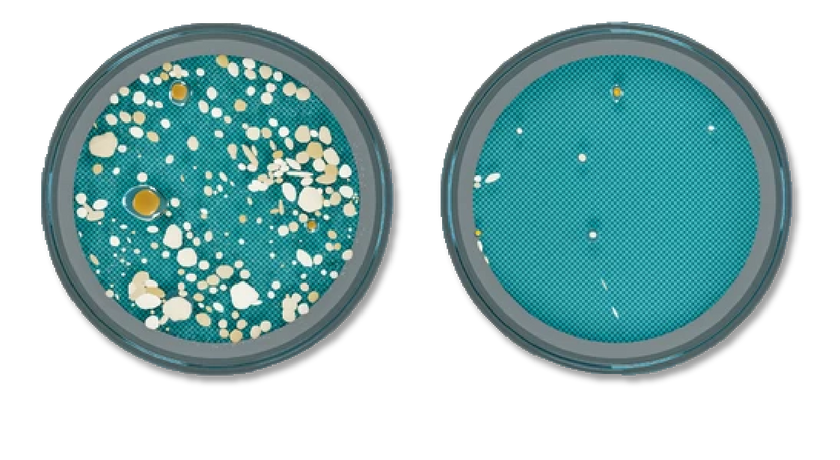 The Agar plates here show the bathroom air with and without a Panfan fitted to public toilets. The study was done by the Dublin University where Panfan has been proven to remove 99.9% of all airborne micro-organisms. So not only is the air odour free, its free from related air borne micro-organisms as well.